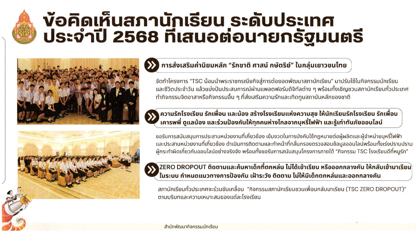 • ข้อคิดเห็นสภานักเรียนประจำปี2568