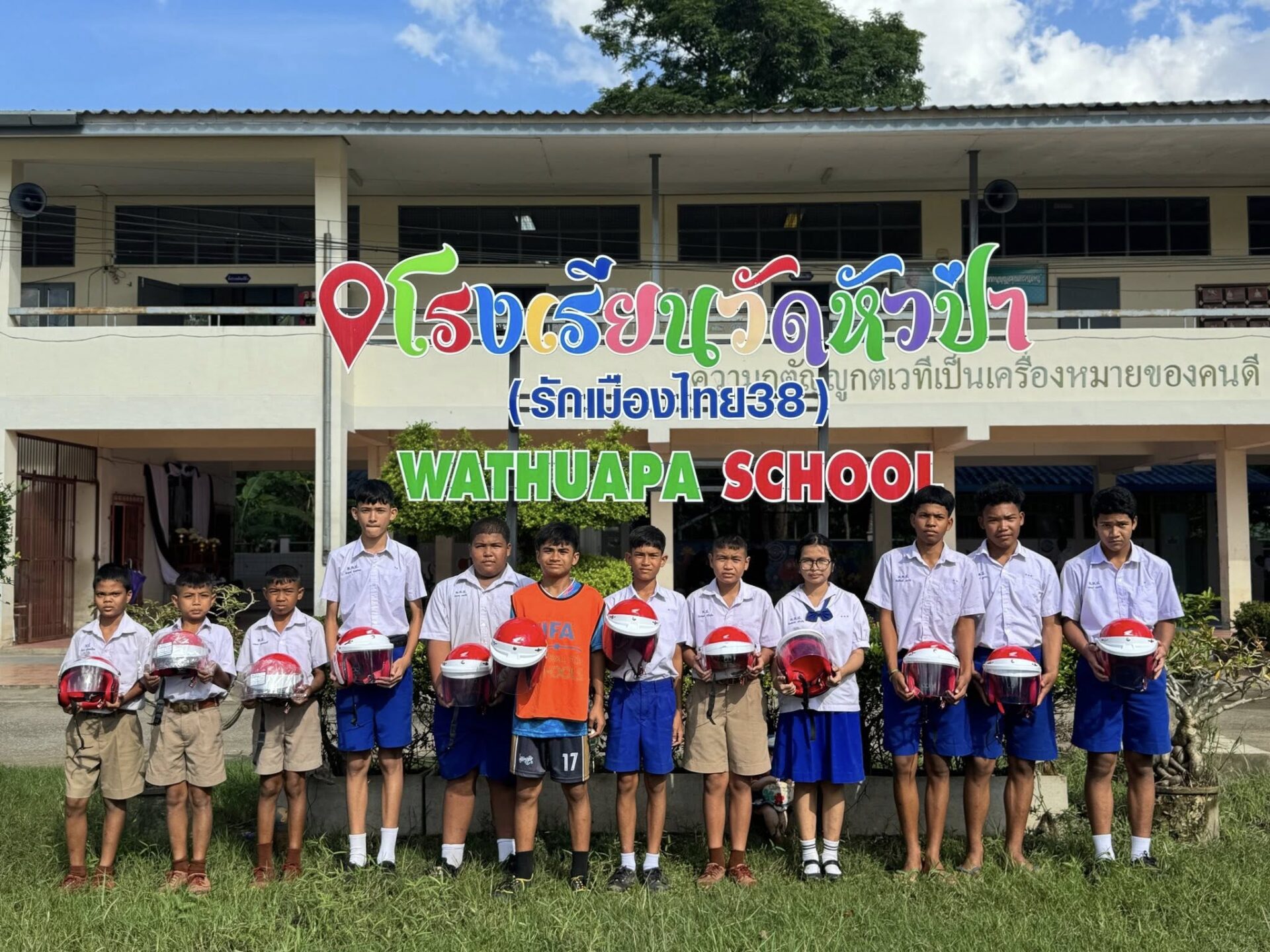 โรงเรียนขอขอบพระคุณ บริษัท ไทยฮอนด้า ที่ได้มอบหมวกนิรภัยตามโครงการ “60 ปี ไทยฮอนด้า ขับขี่ปลอดภัย เพื่อสังคมไทยที่ยั่งยืน” เพื่อใช้ในการส่งเสริมความปลอดภัยทางถนนแก่นักเรียนทางโรงเรียนขอขอบพระคุณในความห่วงใยและการสนับสนุนครั้งนี้เป็นอย่างสูง